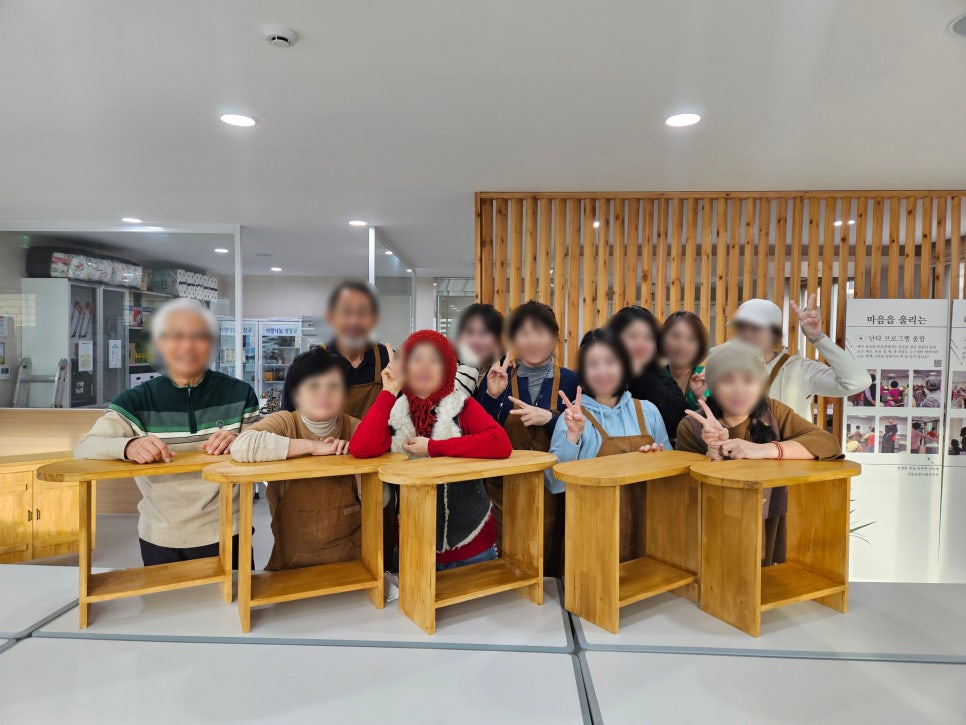 매주 화요일 오후 나무 향기로 가득했던 에코브릿지가 12월 사선다리 수납장과 타원 스툴 완성을 끝으로 올해의 여정을 마쳤습니다. 고난도 작업에도 불구하고 참여자들은 서로의 조립과 도색을 도우며 눈부신 실력 향상을 보여주었으며, 특히 마지막 시간에는 강사님이 준비한 깜짝 선물로 마무리를 장식했습니다. 기술 습득을 넘어 서로의 부족함을 채워주는 든든한 동료가 된 주민들의 열정 덕분에 더욱 빛나는 한 해였습니다. 정성과 집중력으로 완성한 멋진 작품들처럼 내년에고 주민들의 일상을 단단하고 아름답게 가꾸는 에코브릿지로 돌아오겠습니다.