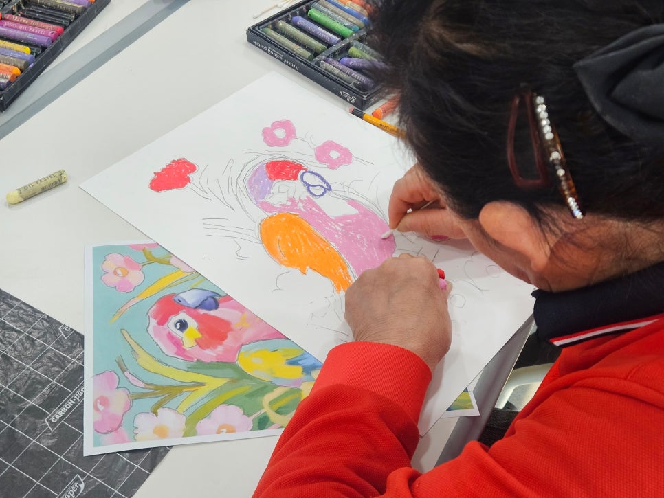 주문마루센터를 화사한 색으로 물들였던 그림화방 미술교실이 12월 크리스마스 리스 그리기를 끝으로 활동이 마무리되었습니다. 사슴과 앵무새를 정성껏 그리며 서로의 색감을 칭찬하고 때로는 노래를 흥얼거리며 쌓아온 시간은 단순한 수업을 넘어 따뜻한 교류의 장이 되었습니다. "벌써 한 해가 다 갔다."는 아쉬움 섞인 대화 속에서도 완성된 작품을 보며 환하게 웃으시던 주민분들의 모습이 기억에 남습니다. 1년 동안 붓끝으로 소통하며 행복을 그려주신 주민들께 감사드리며, 내년에도 더 다채로운 색깔을 담은 작품들로 만나기를 기대합니다.