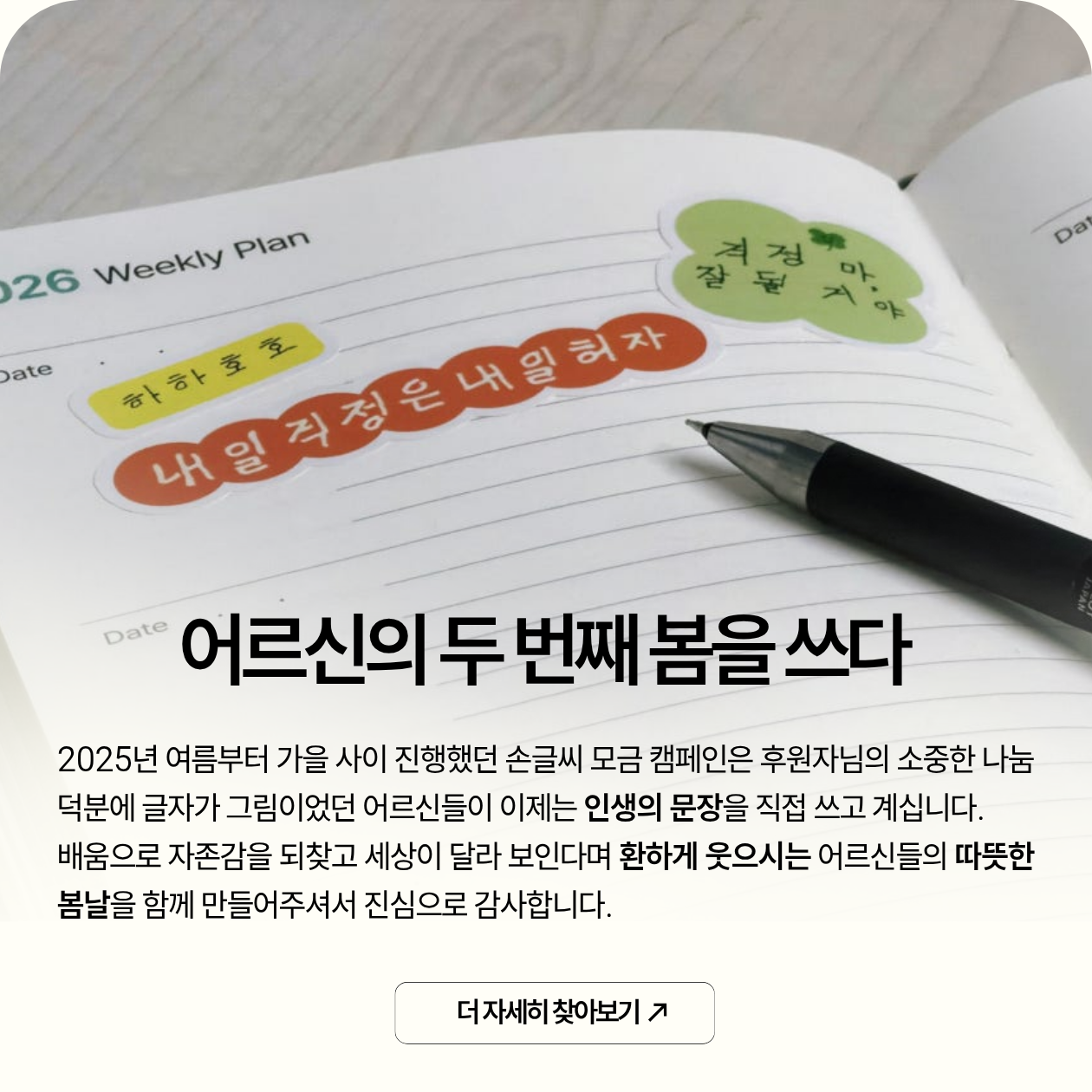 내년 봄, 한층 더 단단해진 손글씨로 다시 만날 어르신들의 새로운 도전을 기대해 주세요.