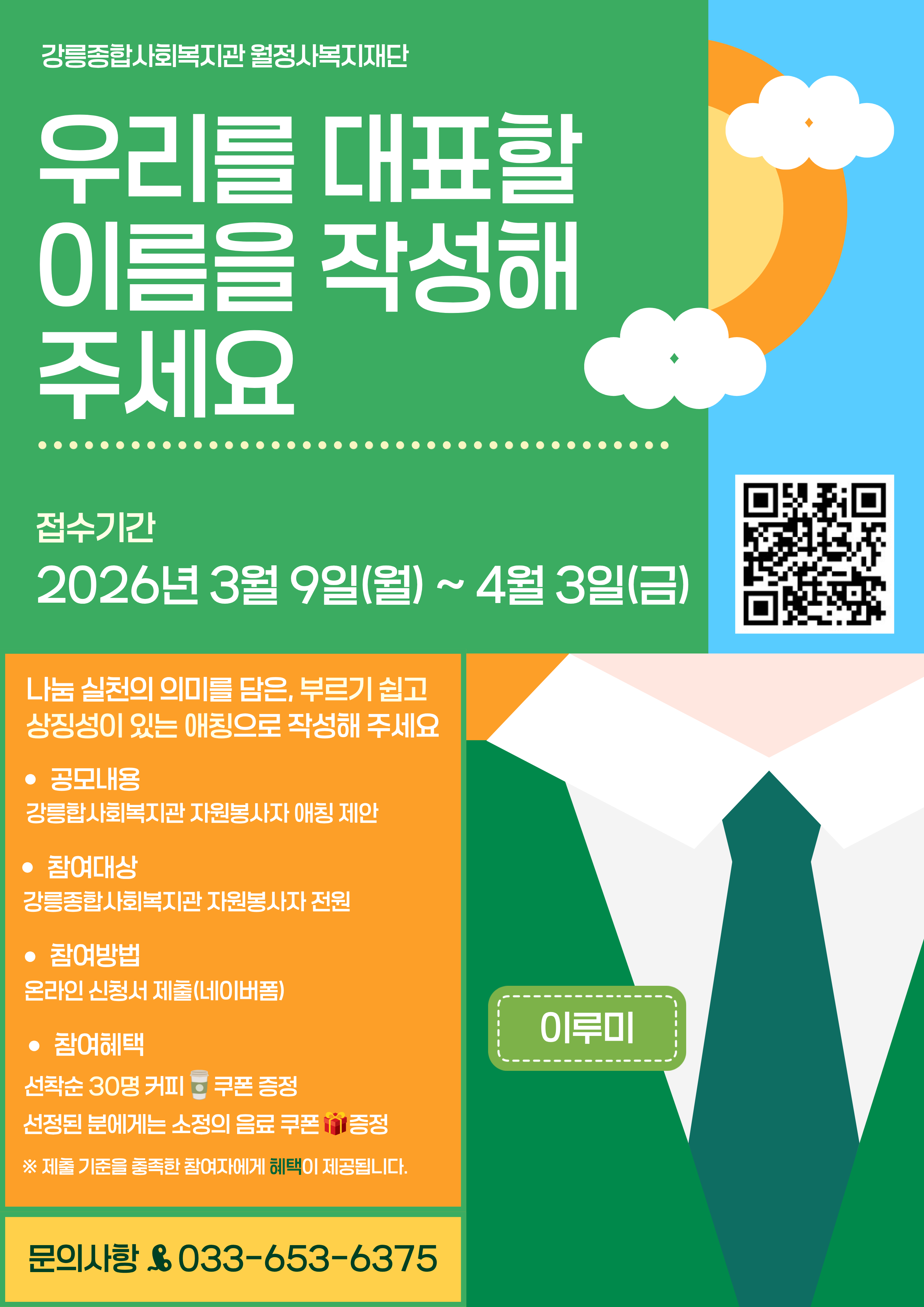 2월부터 강릉시 5개 동, 16개 활동 장소에서 지역 환경을 깨끗하게 가꾸는 ‘늘푸름환경지킴이’ 공익활동이 힘차게 문을 열었습니다. 아직은 바람이 차갑지만, 어르신들은 서로의 안부를 묻고 웃음꽃을 피우며 마을 구석구석을 정성스럽게 돌보고 계십니다. 어르신들의 소중한 손길로 더욱 쾌적해질 우리 동네를 기대하며, 올 한 해도 건강하고 보람차게 활동하실 수 있도록 주민 여러분의 따뜻한 응원 부탁드립니다.